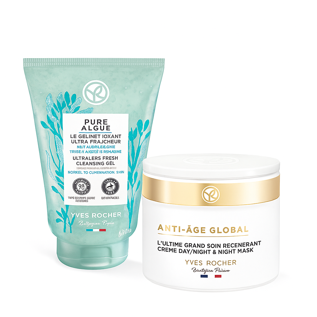 Kombinacija bogate kreme sa višestrukim anti-age delovanjem i gela sa mikroalgama za čistu i osveženu kožu. Ovaj set je idealan za svakodnevnu rutinu nege, ujutru i uveče.