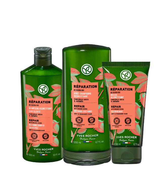 Suva i oštećena kosa zaslužuje nežnu, ali dubinsku negu. Yves Rocher BIO Jojoba linija pruža upravo to – zahvaljujući moćnim formulama obogaćenim organskim uljem jojobe, kosa postaje jača, elastičnija i sjajnija. Svi proizvodi su bez sulfata, s visokim udelom sastojaka prirodnog porekla, i pružaju klinički potvrđene rezultate u smanjenju lomljenja.