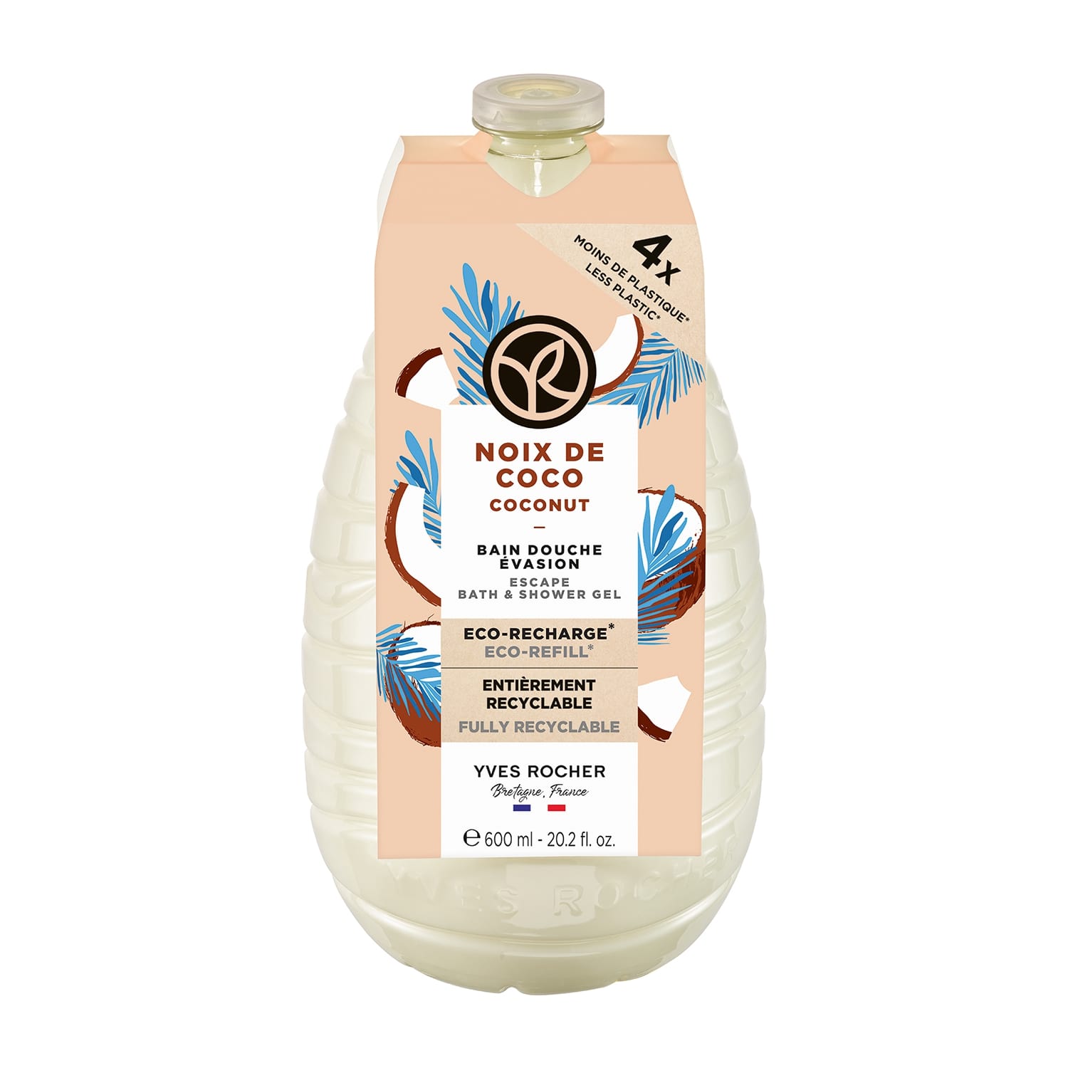 The replaceable ECO format of 600 ml contains 4 times less plastic compared to the shower gel bottle of 400 ml. The packaging is made up of at least 90% recycled plastic and is fully recyclable.