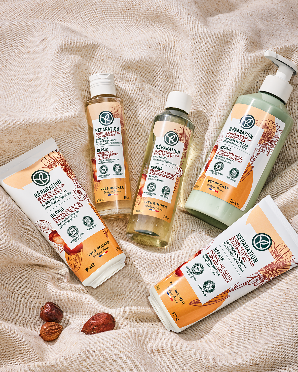 Sulfate-free shower balm* , enriched with BIO Shea oil and BIO Calendula , gently cleanses the skin.