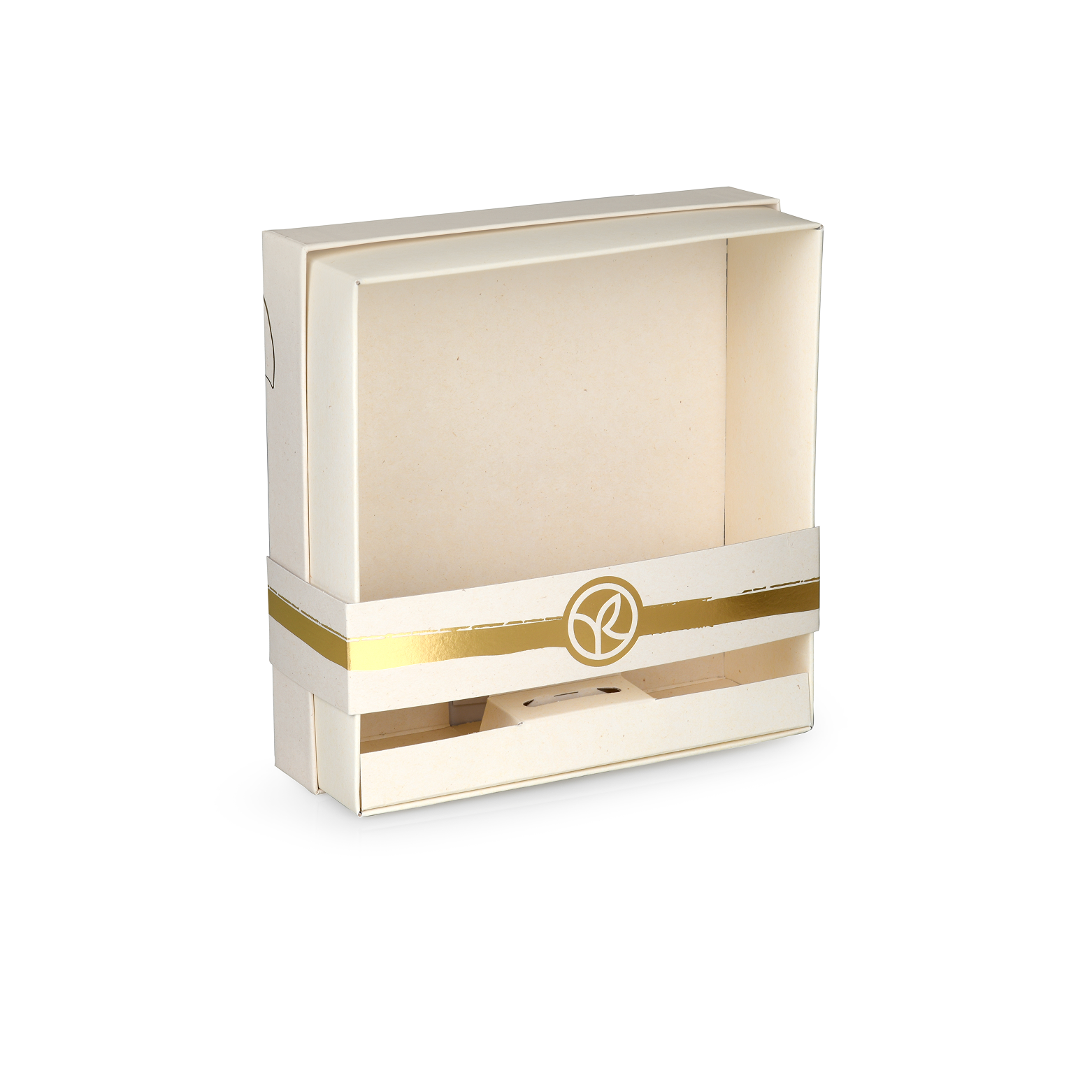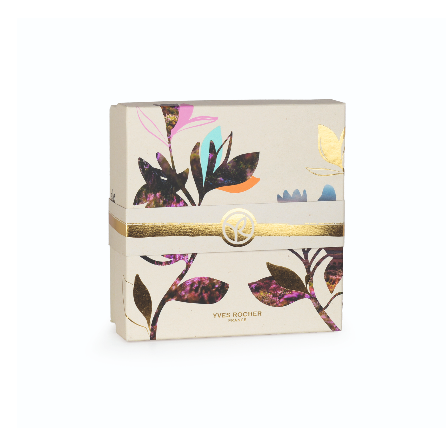 Elegantna dekorativna kutija za poklone, izrađena od kvalitetnog kartona, idealna za pakovanje poklona sa stilom. U nežnoj bež boji, ukrašena prepoznatljivim motivima Yves Rocher brenda, savršeno upotpunjuje svaki poklon i daje mu poseban, pažljivo odabran izgled.