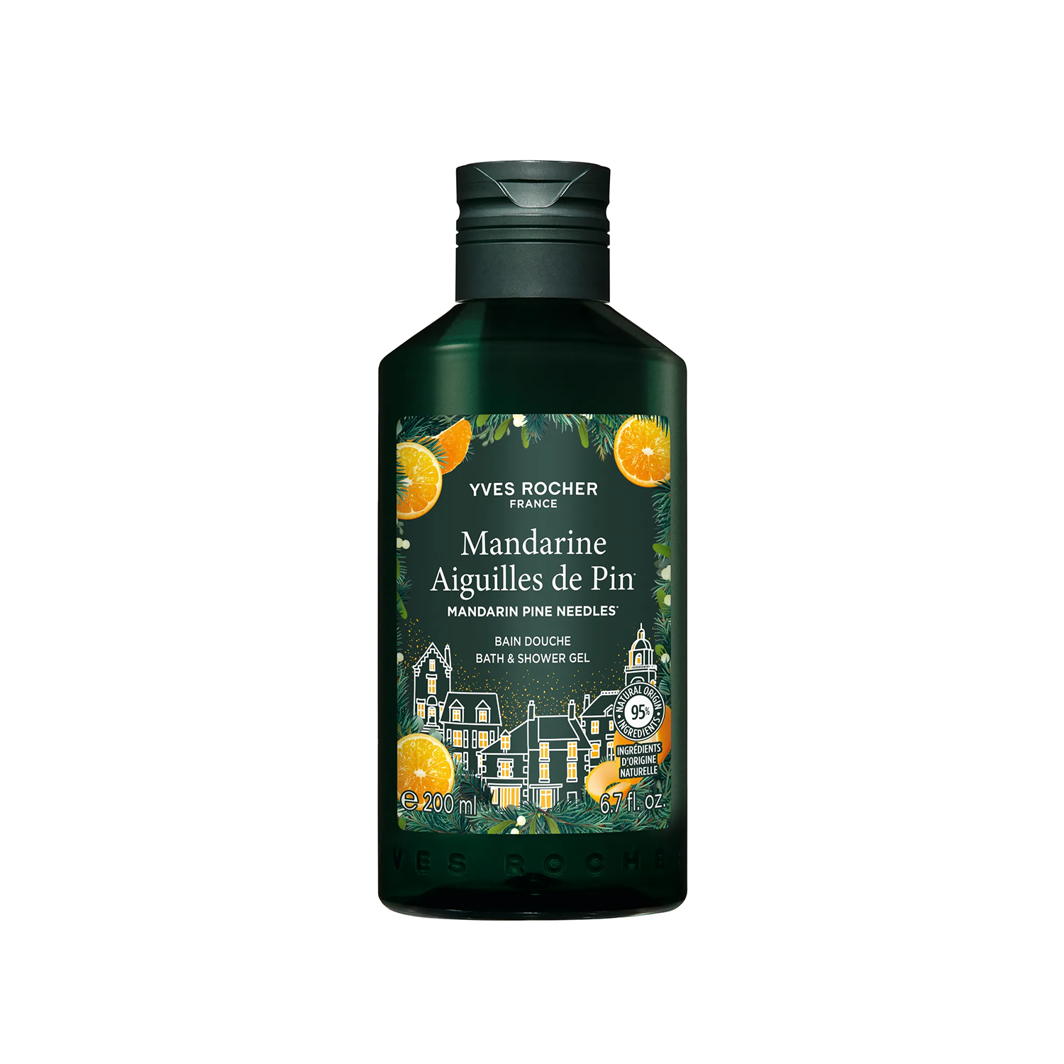 Gel za tuširanje sa blistavim i voćnim mirisom mandarine*, obogaćen drvenastim notama bora*.