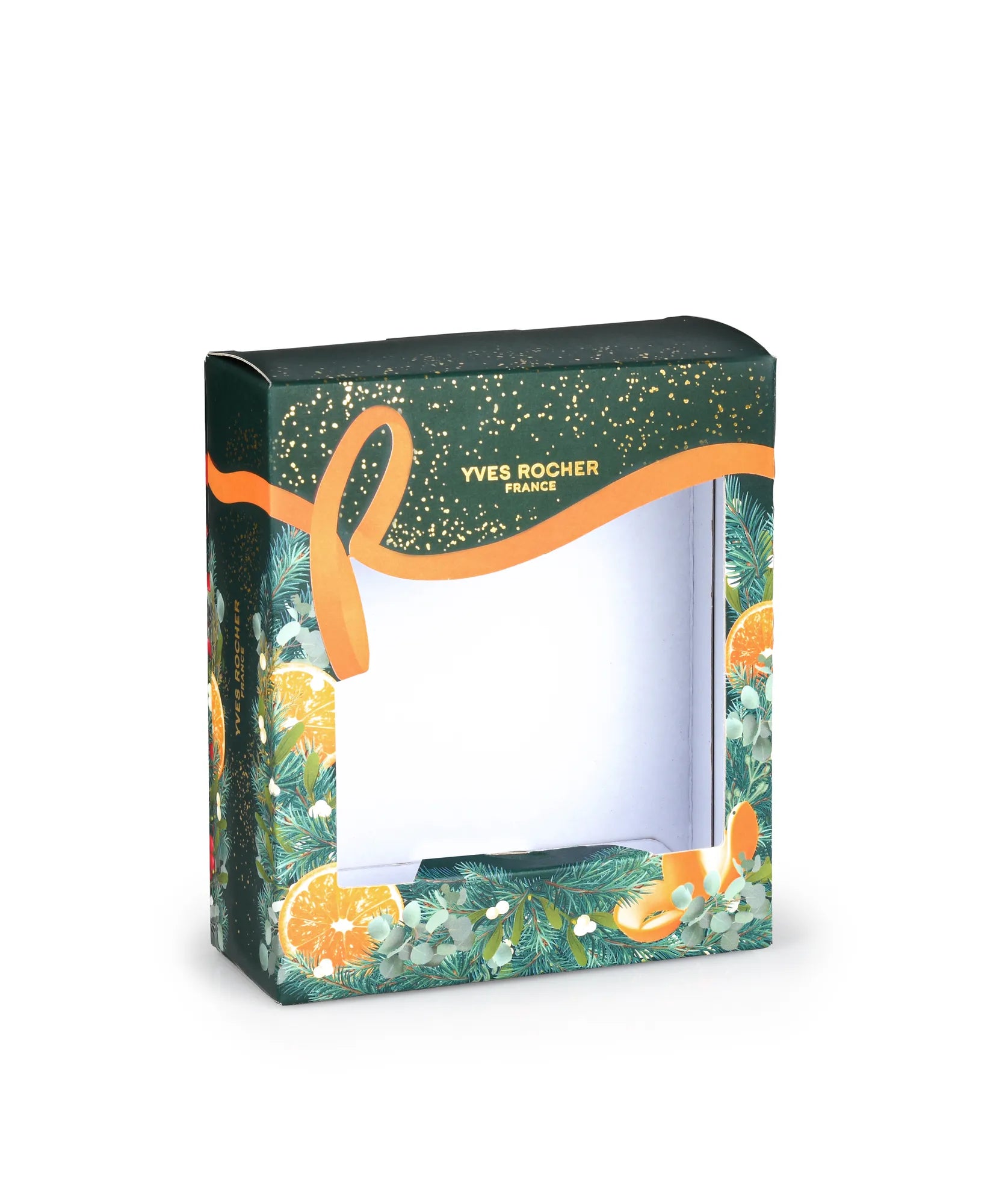 Elegantna praznična kutija nadahnuta mirisom i toplinom mandarine. Savršena za pakovanje poklona i stvaranje trenutka radosti.