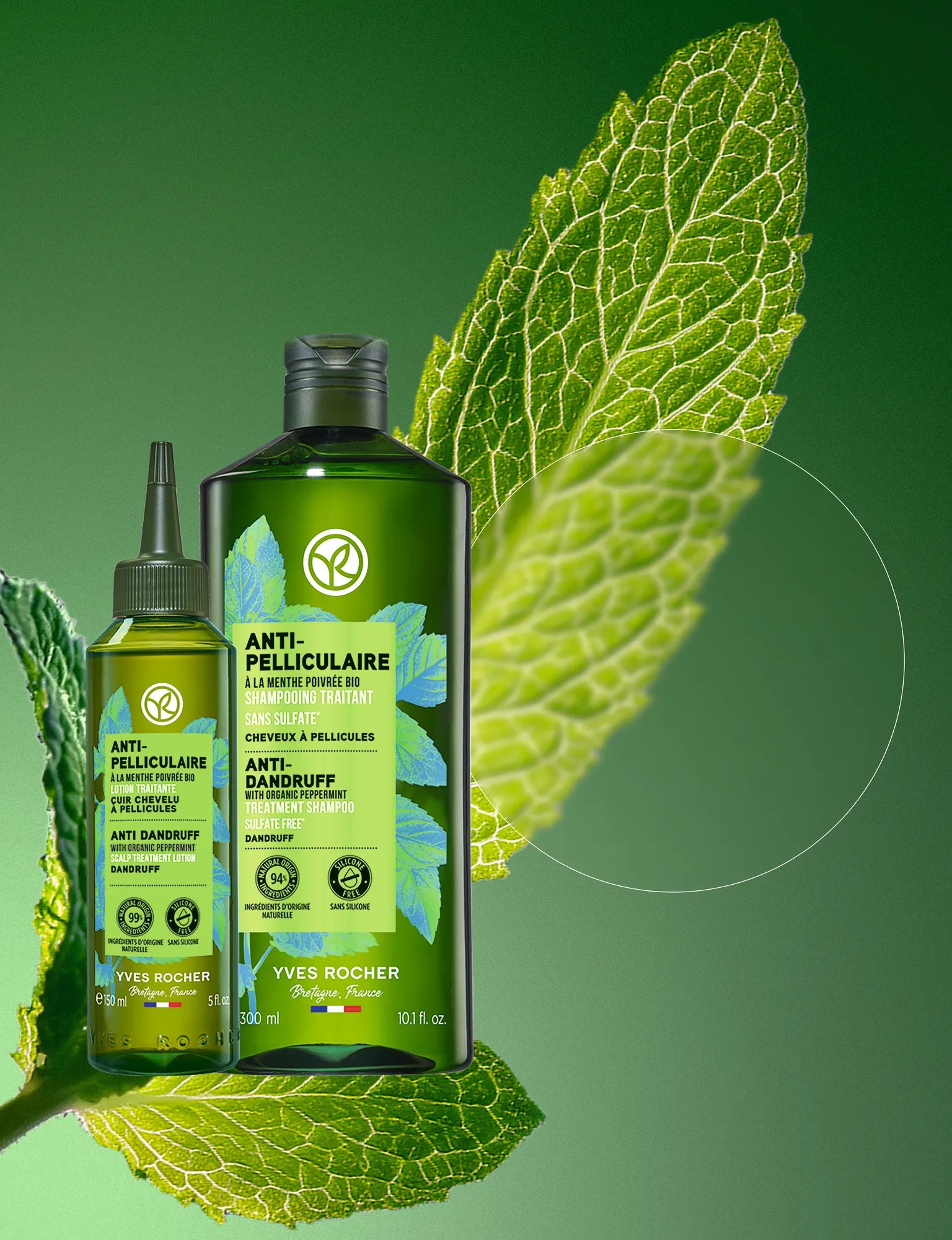 Zahvaljujući svom jedinstvenom znanju iz biljnog sveta, istraživači Yves Rochera odabrali su vodicu organske nane iz La Gacillyja zbog njenih osvežavajućih svojstava. Ona pomaže u smanjenju nelagodnosti temena osetljivog na perut. Ovaj zaštićeni sastojak integrisan je u srž formule koja uklanja perut i sprečava njeno ponovno pojavljivanje.