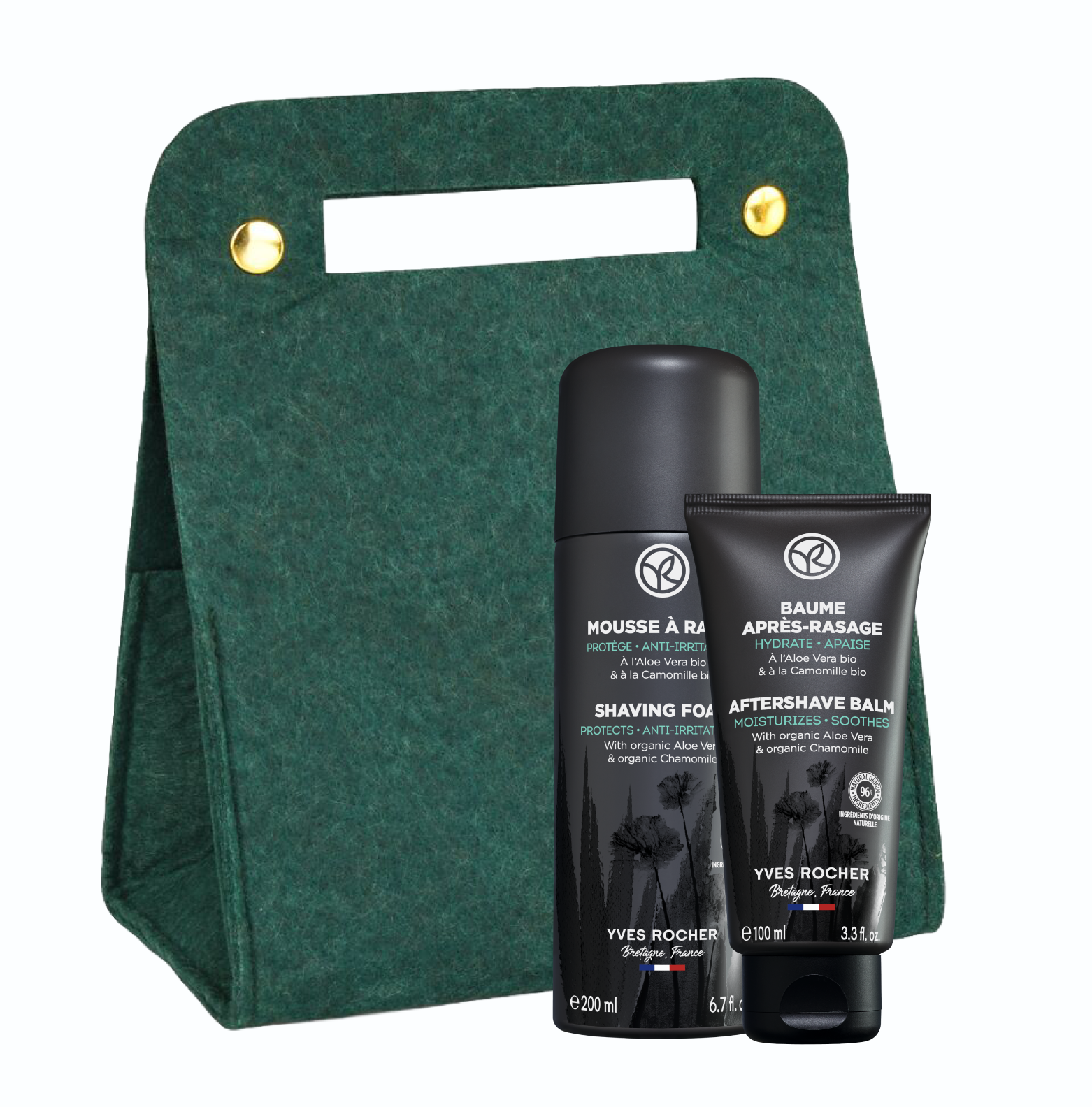 Ovaj set za brijanje kombinuje umirujuću moć organske aloe vere i kamilice kako bi pružio koži muškarca potpunu negu — pre i nakon brijanja. Idealan za svakodnevnu rutinu, čak i za osetljivu kožu.