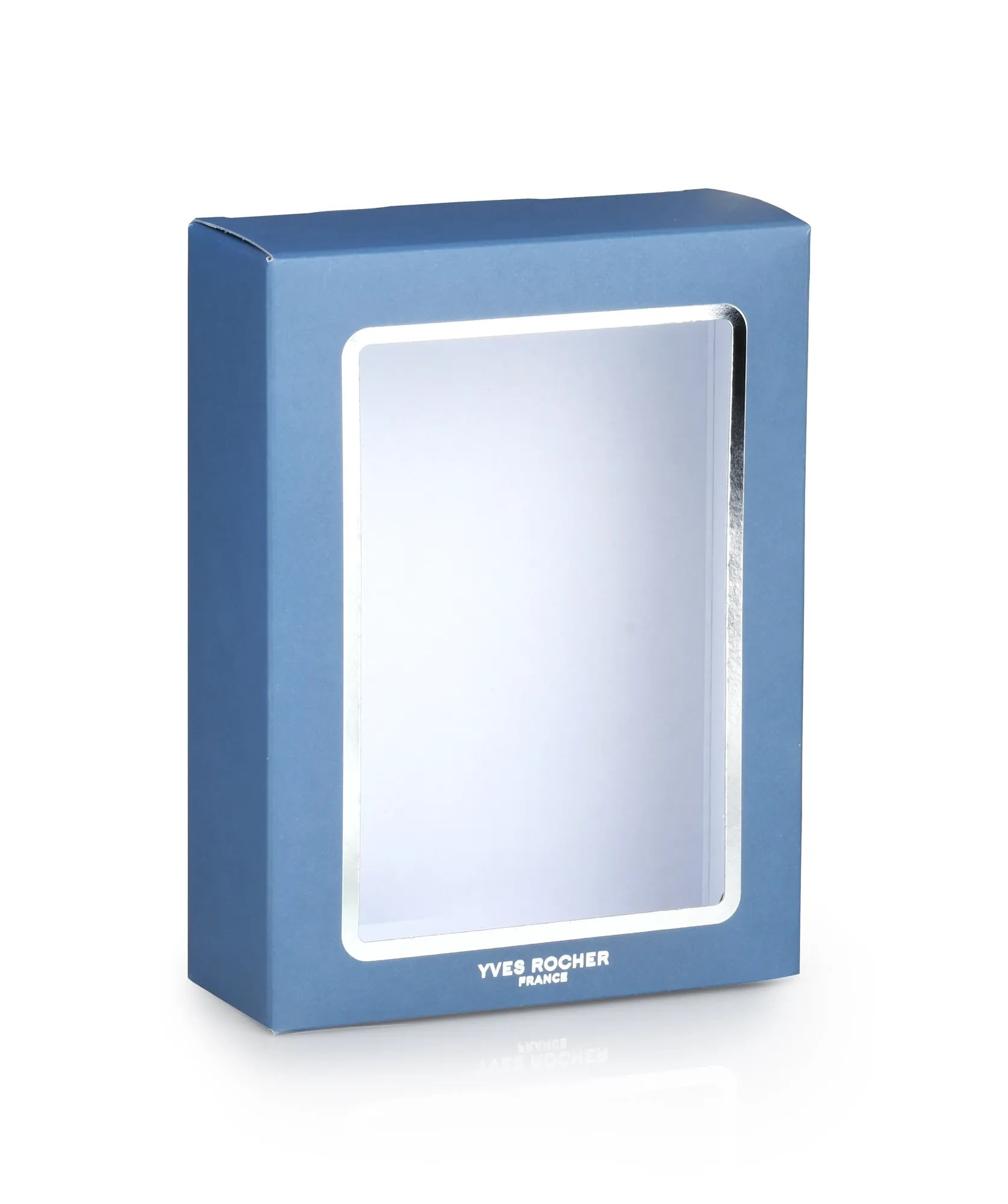 Svedena i sofisticirana, svetloplava poklon-kutija sa belim Yves Rocher logotipom idealan je izbor za muške setove.